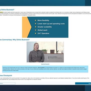 " The course features experts in online entrepreneurship who discuss career opportunities, necessary skills for success, and emerging online business trends."